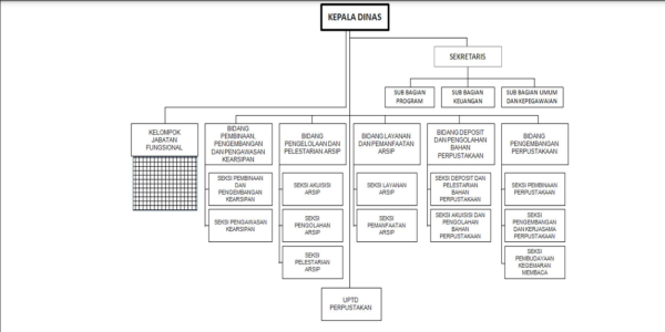 Terdapat struktur organisasi dalam Dinas Kearsipan dan Perpustakaan Jawa Tengah. Tugas dan wewenang struktur organisasi tersebut dijabarkan sebagai berikut.