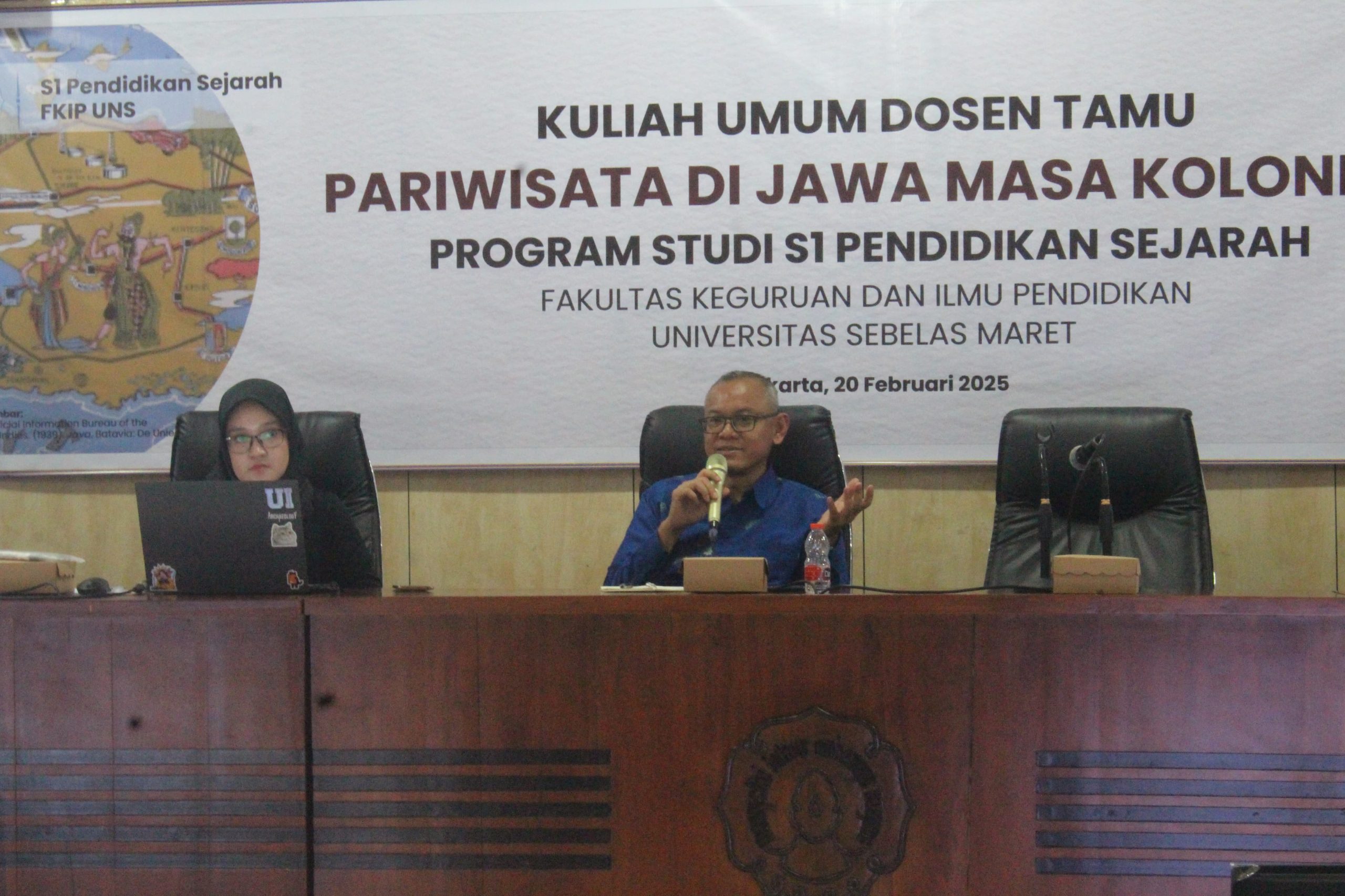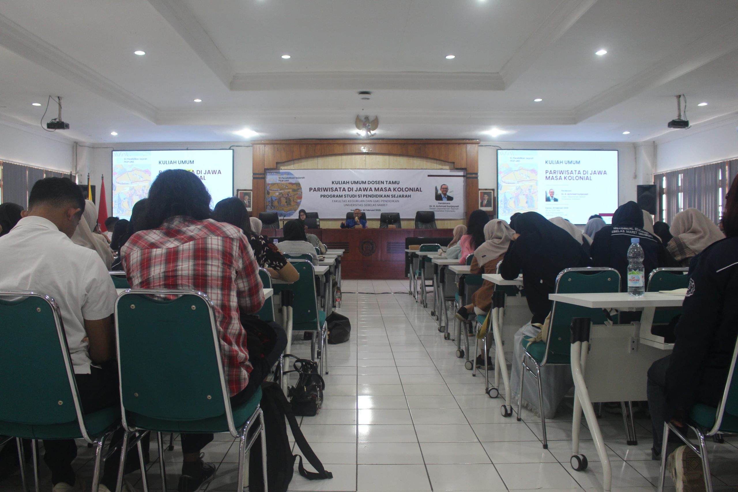 Kuliah Umum Dosen Tamu dengan tajuk Pariwisata di Jawa Masa Kolonial, dihadiri oleh mahasiswa dan dosen Prodi Pendidikan Sejarah, serta tamu undangan dari komunitas wisata sejarah