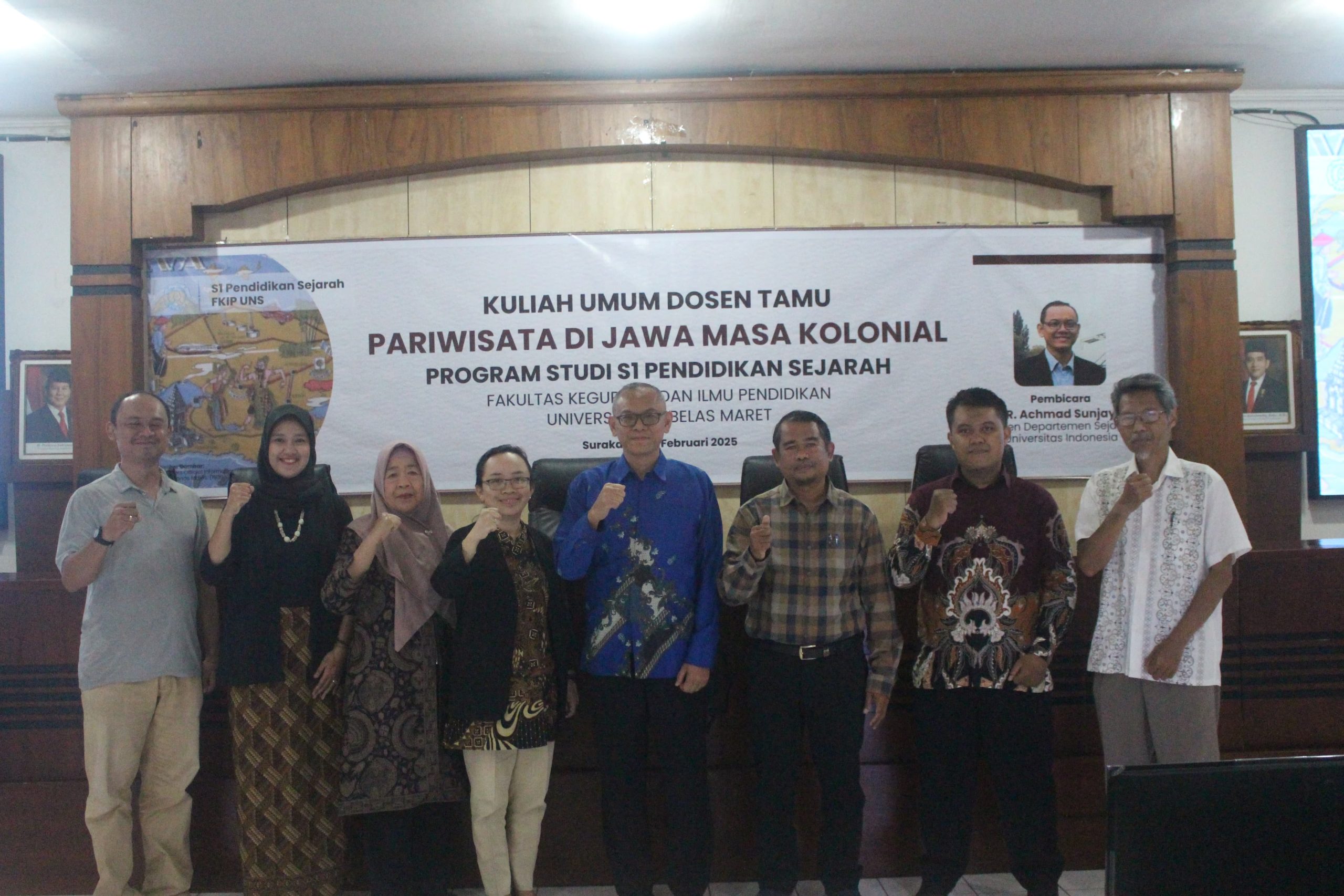 SURAKARTA – Pada Kamis (20/02/2025), Program Studi Pendidikan Sejarah FKIP UNS menggelar Kuliah Tamu dengan tema “Pariwisata di Jawa Masa Kolonial” yang dilaksanakan di Aula Gedung Pascasarjana FKIP UNS. Pemateri yang diundang untuk membawakan materi tersebut adalah Dr. R. Achmad Sunjayadi, yang merupakan dosen dari Departemen Sejarah Universitas Indonesia. Kuliah tamu ini dihadiri oleh mahasiswa S1 Pendidikan Sejarah dari berbagai angkatan, para dosen dari Program Studi Pendidikan Sejarah, serta tamu undangan dari komunitas wisata sejarah di Solo Raya. Secara khusus, acara ini diselenggarakan agar mahasiswa mendapatkan wawasan bahwa pada masa kolonial tidak selalu menyoal tentang politik, namun juga ada sisi pariwisata yang bisa dikaji.